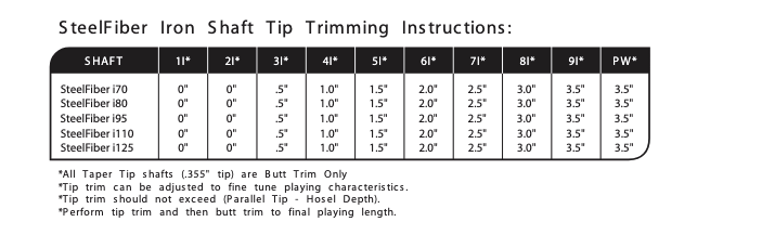 Aerotech SteelFiber Iron är en komplett serie grafitjärnskaft med parallell .370" tip, utvecklad för att kombinera grafitens komfort med stålets stabilitet och precision. Serien täcker ett mycket brett spann av vikter och spelprofiler, från långsammare svinghastigheter till tourspelare.