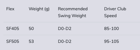 The shaft automatically optimize the transfer of energy despite different swing speeds.