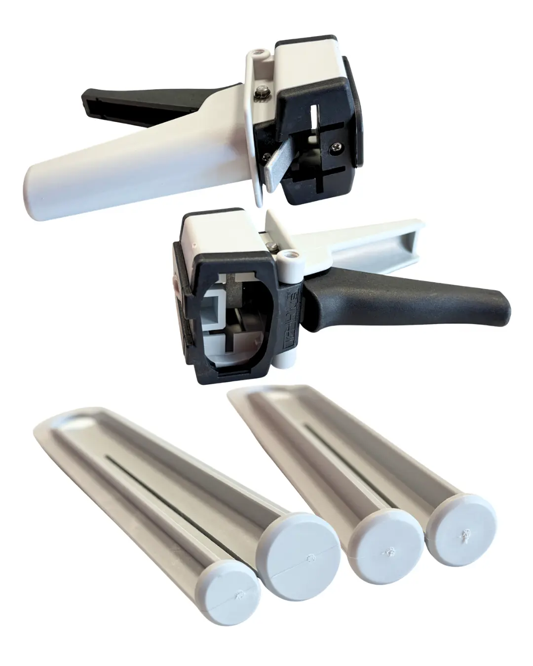 Levereras med 2 plungers för 1:1 och 1:2 blandningsförhållande, vilket möjliggör användning med olika typer av patroner.