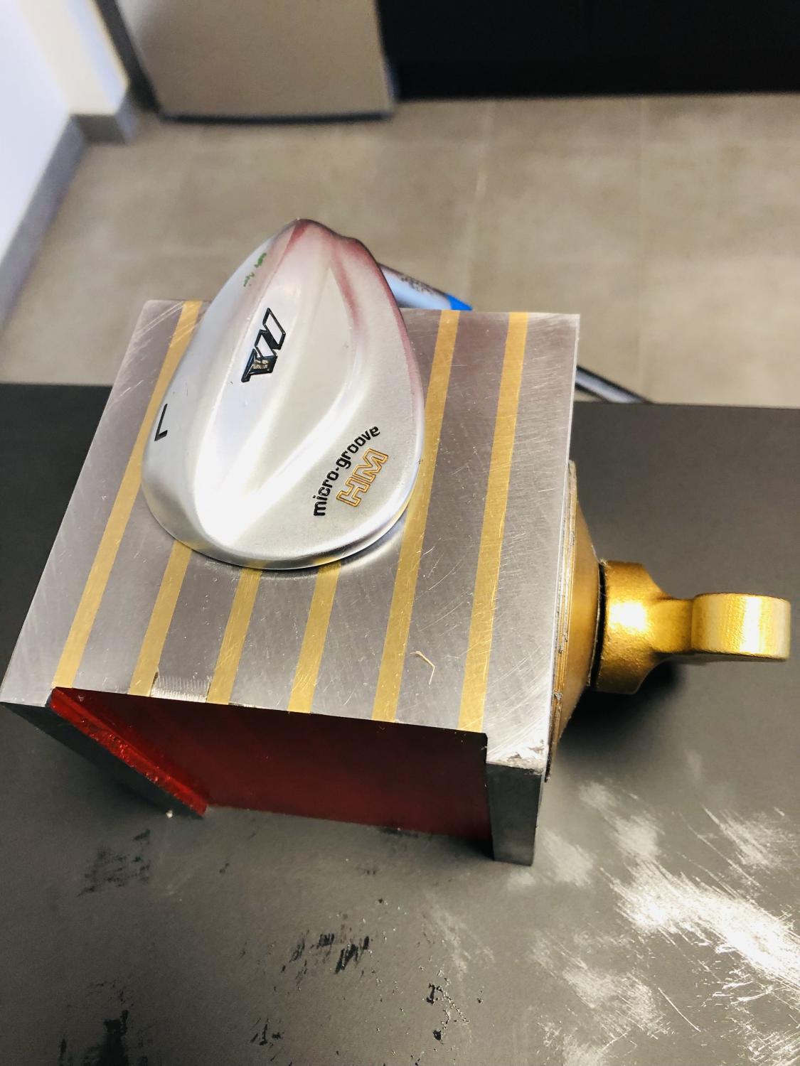 Will have the head in place, while You stamping the irons/wedges.