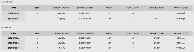The S2S Black and White DCT shafts reflect Wishon’s commitment to advance shaft engineering design. By aligning shaft performance with individual swing dynamics, these shafts offer golfers an optimised experience enhancing both feel and accuracy on the course.